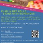 - Online-ImpulsabendWas Eltern und Elternausschüsse in der Kita leisten können – und wo ihre Grenzen liegen Der Stadtelternausschuss Trier (StEA Trier) und zehn weitere Kreis- und Stadtelternausschüsse aus Rheinland-Pfalz laden Sie herzlich zu einer Online-Veranstaltung ein. Unter dem Motto „Mit Herz und Haltung für unsere Kinder“ zeigen wir, wie Eltern gemeinsam mit Kita-Leitungen, Fachkräften und Trägern das Miteinander in der Kita gestalten und damit… Online-Impulsabend weiterlesen
